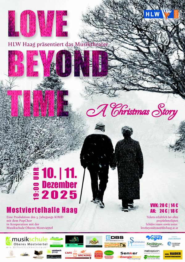 Tickets erhältlich bei allen projektbeteiligten Schüler:innen sowie unter lovebeyondtime@hlwhaag.ac.at